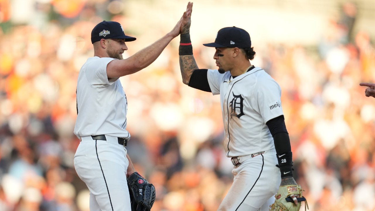 स्पेंसर टॉर्केलसनने दुहेरीने झॅक मॅककिन्स्ट्रीच्या सिंगलवर डेट्रॉईटची पाचवा धावा केल्या आणि बाएजने त्याच्या पोस्टसेसनच्या सहाव्या होमरसह -3–3 अशी बरोबरी साधली.