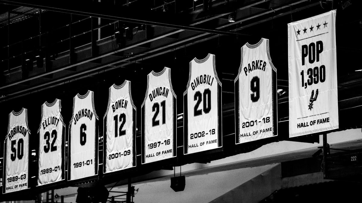 “पॉप 1,390 – हॉल ऑफ फेम”, त्याने सॅन अँटोनियोला दिलेल्या पाच NBA चॅम्पियनशिपचे प्रतिनिधित्व करणाऱ्या पाच स्टार्सने चिन्हांकित केले.