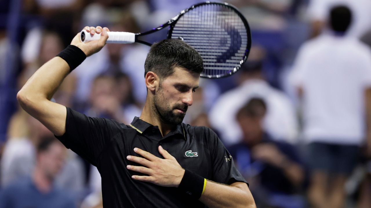 पहिल्या सेटच्या -3–3 बिंदूत असताना जोकोविचने व्हॉलीपर्यंत पोहोचण्यासाठी त्याचे रॅकेट विचित्रपणे उंच केले आणि सर्व काही योग्य नाही याची लक्षणे त्वरित दर्शविली. त्याने बिंदूंच्या दरम्यान आपला पाठ वाढविण्याचा प्रयत्न केला आणि नायिका एका कोप eod ्यावर धडकलेल्या एका चेंडूसाठी धाव घेतली.