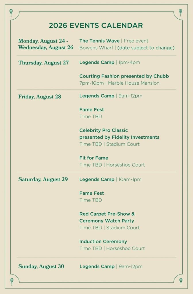 2026 च्या वर्गासाठी आंतरराष्ट्रीय हॉल ऑफ फेम वीकेंड इव्हेंटची संपूर्ण यादी येथे आहे: