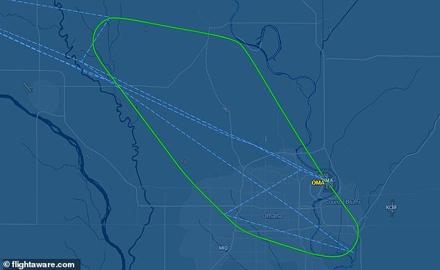 उड्डाणाचे इमर्जन्सी लँडिंग झाल्यानंतर पोलिसांची वाहने ओमाहा येथील एप्ले एअरफील्डवर पोहोचली