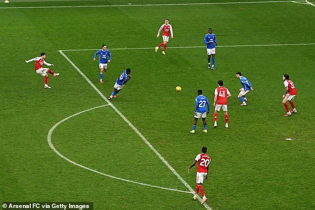 आर्सेनलचे वर्चस्व पण क्वचितच भेदले गेले. हाफ टाईमच्या आधी लिआँड्रो ट्रोसार्डच्या पासवर जुबिमेंडीने गोल करण्यापूर्वी डेक्लन राइसने दूरवरून शिट्टी वाजवली. तणावमुक्ती आणि मुक्तता स्पष्ट होते.