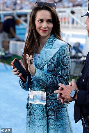 आणि Tar Heels प्रशिक्षकाची मैत्रिण तिच्या एका ‘प्रौढ’ चीअरलीडिंग स्पर्धेतील तिच्या दिसण्याबद्दलच्या अलीकडच्या वादावर मस्करी करण्यास विरोध करू शकली नाही.