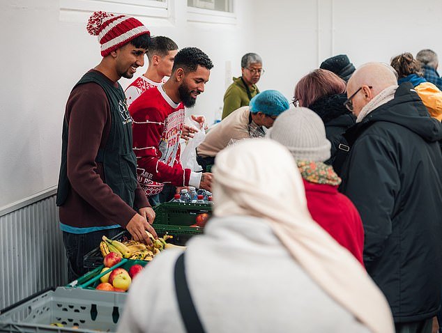 डग्लस लुईस (मध्यभागी) नॉटिंगहॅममधील सलाम शालोम किचनमध्ये मदत करतात जे दर बुधवारी गरजूंना मोफत गरम जेवण पुरवतात. ‘तो एक खास दिवस आहे,’ तो म्हणतो, ‘कारण कधी कधी तुम्हाला वास्तविक जीवन पाहावे लागते.’
