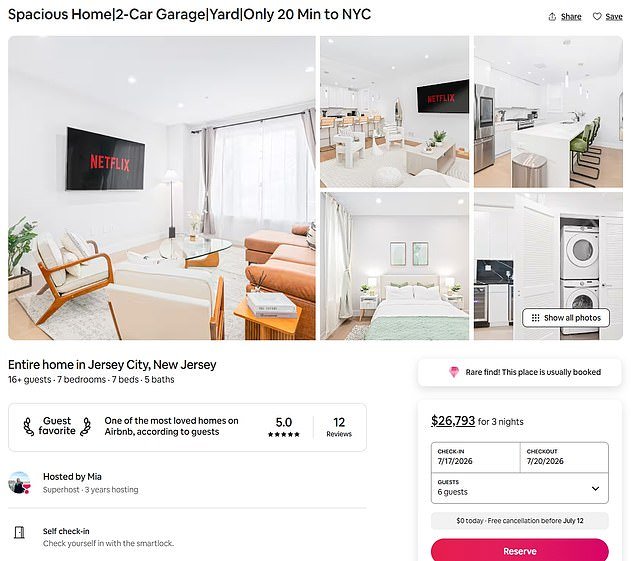 डेली मेलला जवळच्या जर्सी सिटीमध्ये सात बेडरूमची मालमत्ता सापडली ज्याची किंमत तीन रात्रींसाठी सुमारे $27,000 असेल, तर दुसरे सहा बेडरूमचे घर सुमारे $23,000 ला सूचीबद्ध केले गेले.