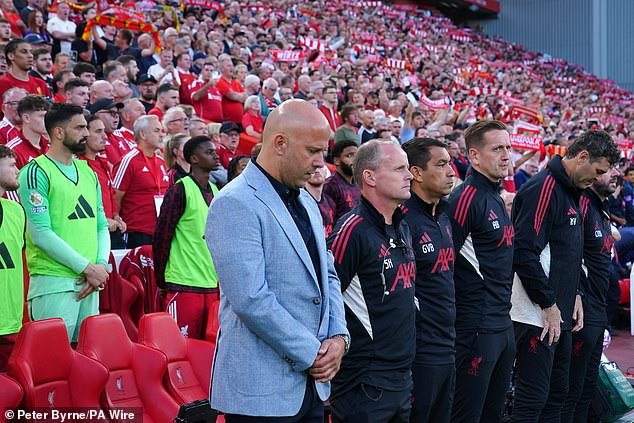 लिव्हरपूलच्या बॉस अर्न स्लॉटने त्यांच्या सुरुवातीच्या दिवसासाठी उशीरा दिगो जटाला समर्पित केले, ज्याचा शुक्रवारी रात्री एनफिल्डला अनेक चालू असलेल्या श्रद्धांजलीचा सन्मान करण्यात आला.