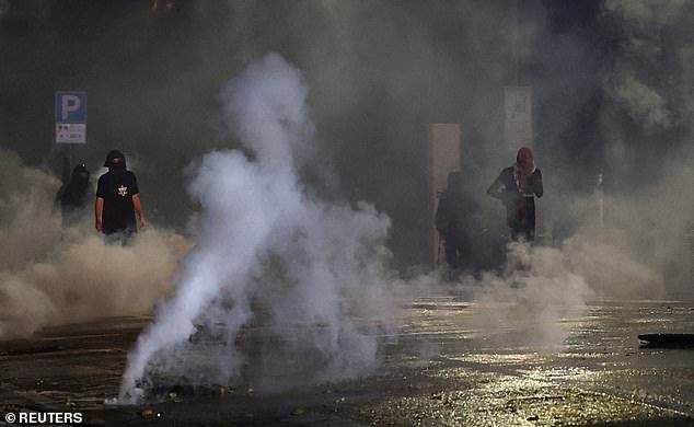निदर्शक आणि पोलिस यांच्यात सुरू असलेल्या झगडा युदिनमध्ये सामना करतात