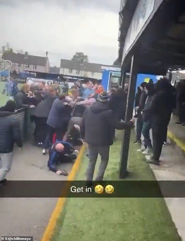 गोंधळादरम्यान सर्वात आश्चर्यकारक घटना घडली जेव्हा पाहुण्या गोलकीपरने त्याच्या गोल करण्यापूर्वी जमलेल्या गर्दीत घरच्या समर्थकाला ठोसा मारला.
