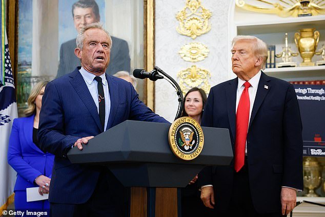 रॉबर्ट एफ. केनेडी ज्युनियर, आरोग्य आणि मानव सेवा सचिव, कालच्या पत्रकार परिषदेत डोनाल्ड ट्रम्प यांच्यासोबत वरचे चित्र आहे