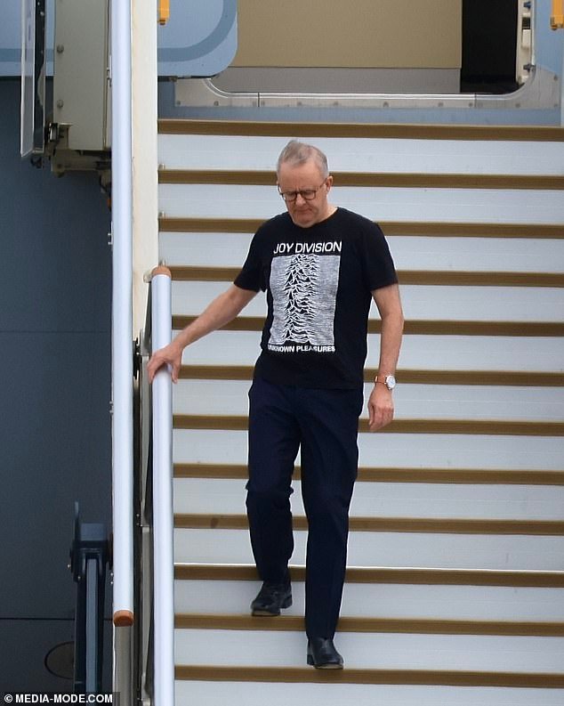 पंतप्रधान अल्बानीज यांनी आकस्मिकपणे काळा ‘जॉय डिव्हिजन’ टी-शर्ट घातला (चित्र)