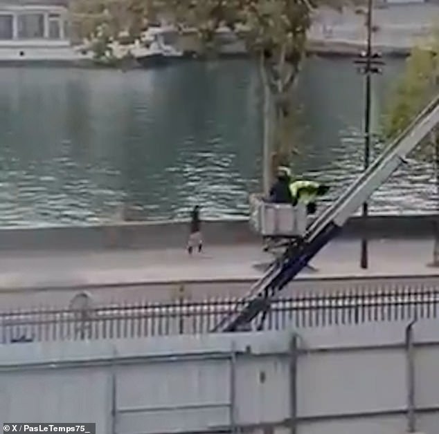 हाच तो क्षण आहे ज्यांनी लुव्रेमधून अंदाजे £76 दशलक्ष किमतीचे मौल्यवान दागिने चोरून मोटारसायकलवरून पळून जाण्यापूर्वी पायऱ्या उतरून पळ काढला.