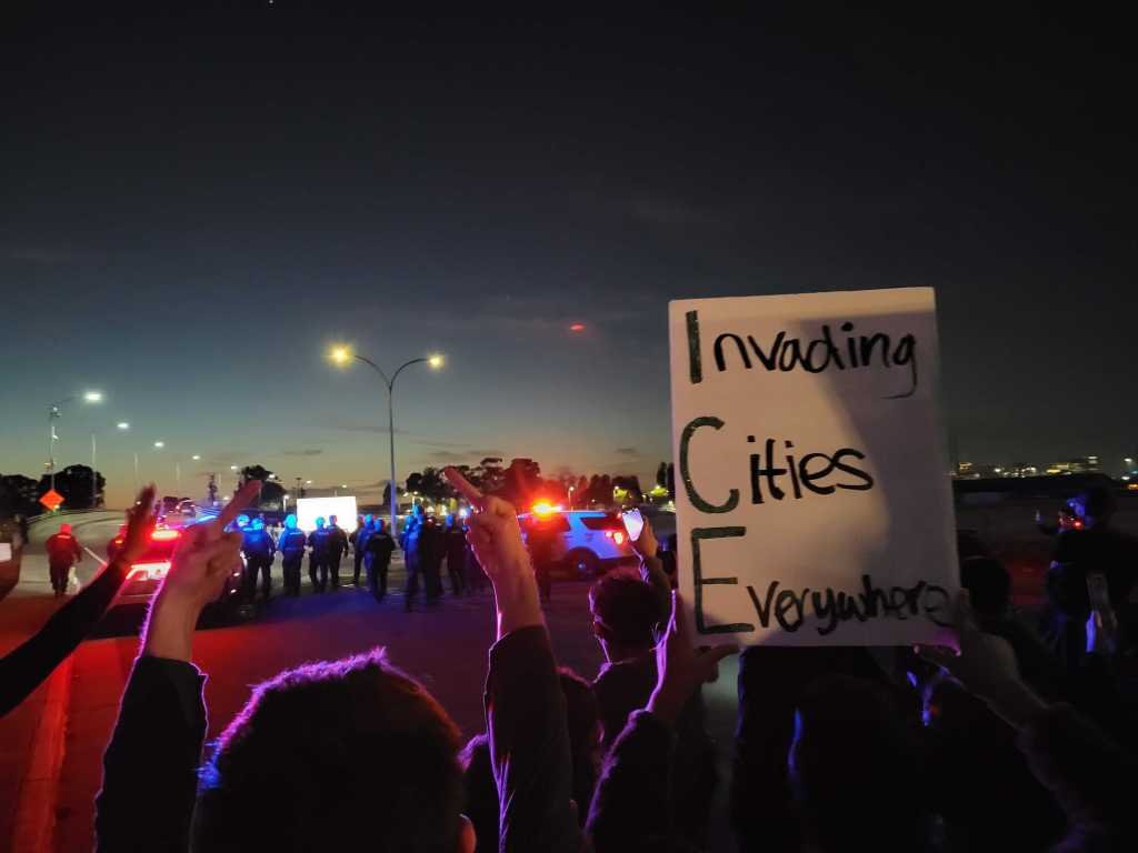 राष्ट्राध्यक्ष डोनाल्ड ट्रम्प यांच्या इमिग्रेशन क्रॅकडाऊनच्या पुढील टप्प्याचा भाग म्हणून बे एरियामध्ये फेडरल एजंट आल्याने लष्करी स्थापनेचे पूर्व ओकलँड प्रवेशद्वार – जे कार किंवा ट्रकने बेटावर जाण्याचा एकमेव मार्ग आहे – हे गुरुवारी निषेधाचे ठिकाण बनले. आदल्या दिवशी, यूएस कस्टम्स आणि बॉर्डर प्रोटेक्शन एजंट्सच्या एका गटाने बेटाच्या प्रवेशद्वारावर निदर्शकांच्या गर्दीतून मार्ग काढला, प्रक्रियेत कमीतकमी एका आंदोलकांवर केमिकल एजंट गोळीबार केला आणि लोकांना त्यांच्या वाहनांसह रस्त्यावरून जाण्यास भाग पाडले.