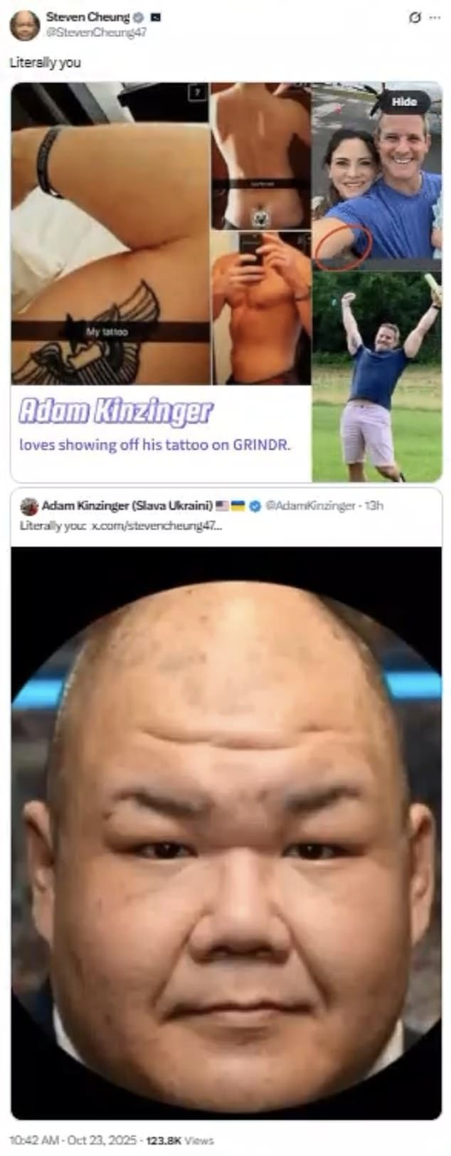 व्हाईट हाऊसचे कम्युनिकेशन डायरेक्टर स्टीफन च्युंग यांनी माजी इलिनॉय रिपब्लिकन रिपब्लिकन रिपब्लिकन रिपब्लिकन रिपब्लिकन रिपब्लिकन ॲडम किंजिंगर, 47, यांच्यावर निंदनीय आरोप केले आहेत, ज्यांनी पाच वर्षांपासून आपल्या पत्नीशी लग्न केले आहे आणि त्यांना एक मूल आहे.