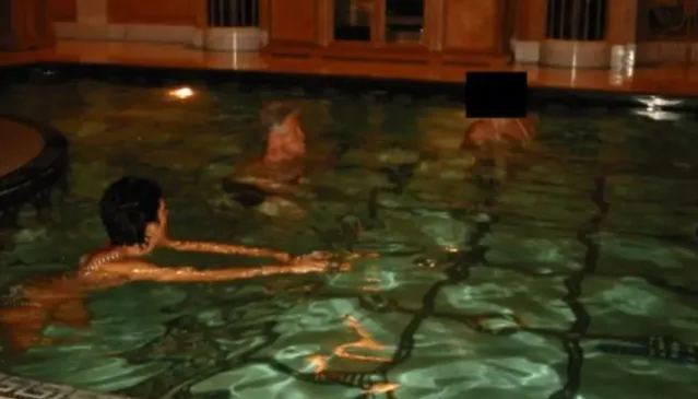 दुसऱ्यामध्ये बिल क्लिंटन हे एपस्टाईनचे दीर्घकाळचे विश्वासू, ब्रिटीश सोशलाईट घिसलेन मॅक्सवेल आणि ज्याच्या चेहऱ्यावर बदल करण्यात आला आहे अशा व्यक्तीसोबत पूलमध्ये दाखवले आहे.