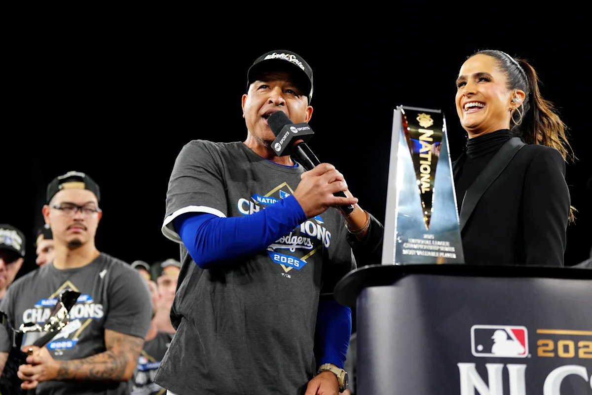 डॉजर्सने सलग दुसरे नॅशनल लीग जेतेपद आणि 25 वर्षांत एमएलबीचे पहिले बॅक-टू-बॅक चॅम्पियन बनण्याची संधी साजरी केल्यामुळे, त्यांच्या व्यवस्थापकाने मायक्रोफोन घेतला आणि एक परिपूर्ण टाच बदलली: