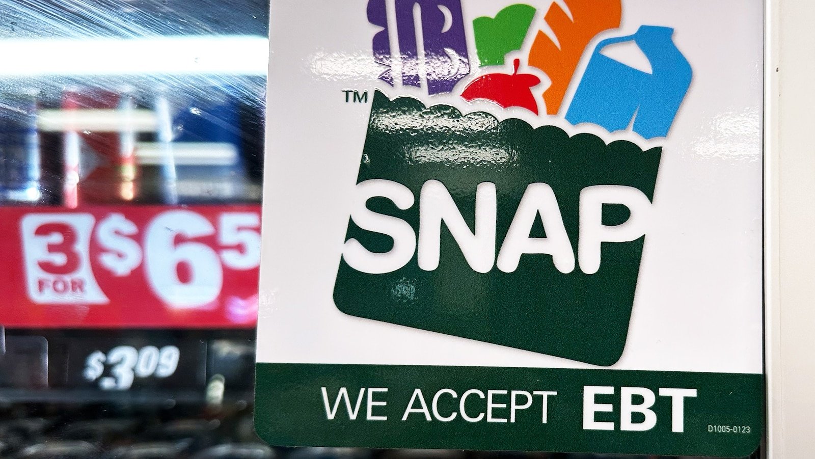 ३१ ऑक्टोबर २०२५ रोजी लॉस एंजेलिसमधील एल रिक्वेर्डो मार्केट येथे “EBT स्वीकारले” असे बॅनरवर लिहिले आहे.