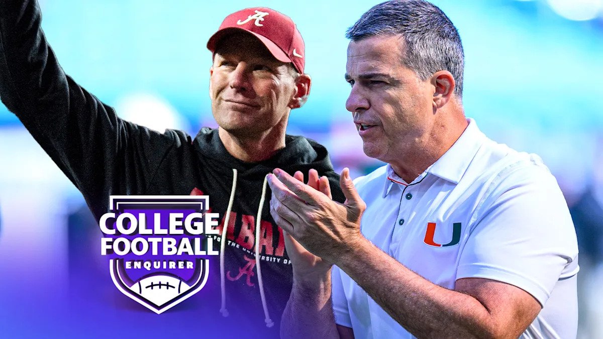 अलाबामाचे मुख्य प्रशिक्षक कॅलन डीबोअर आणि मियामीचे मुख्य प्रशिक्षक मारियो क्रिस्टोबल गेटी इमेजेस मायकेल चांग/गेटी इमेजेसद्वारे डग मरे/आयकॉन स्पोर्ट्सवायरचे छायाचित्र
