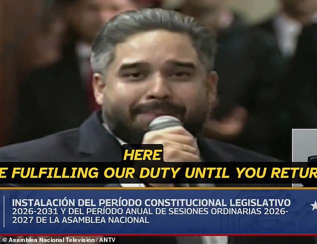2031 पर्यंत चालणाऱ्या नॅशनल असेंब्लीसाठी नियोजित शपथविधी सोहळ्याचे अनुसरण करण्यासाठी मादुरोच्या मुलासह सत्ताधारी पक्षाशी युती केलेले खासदार कराकसमध्ये जमले.