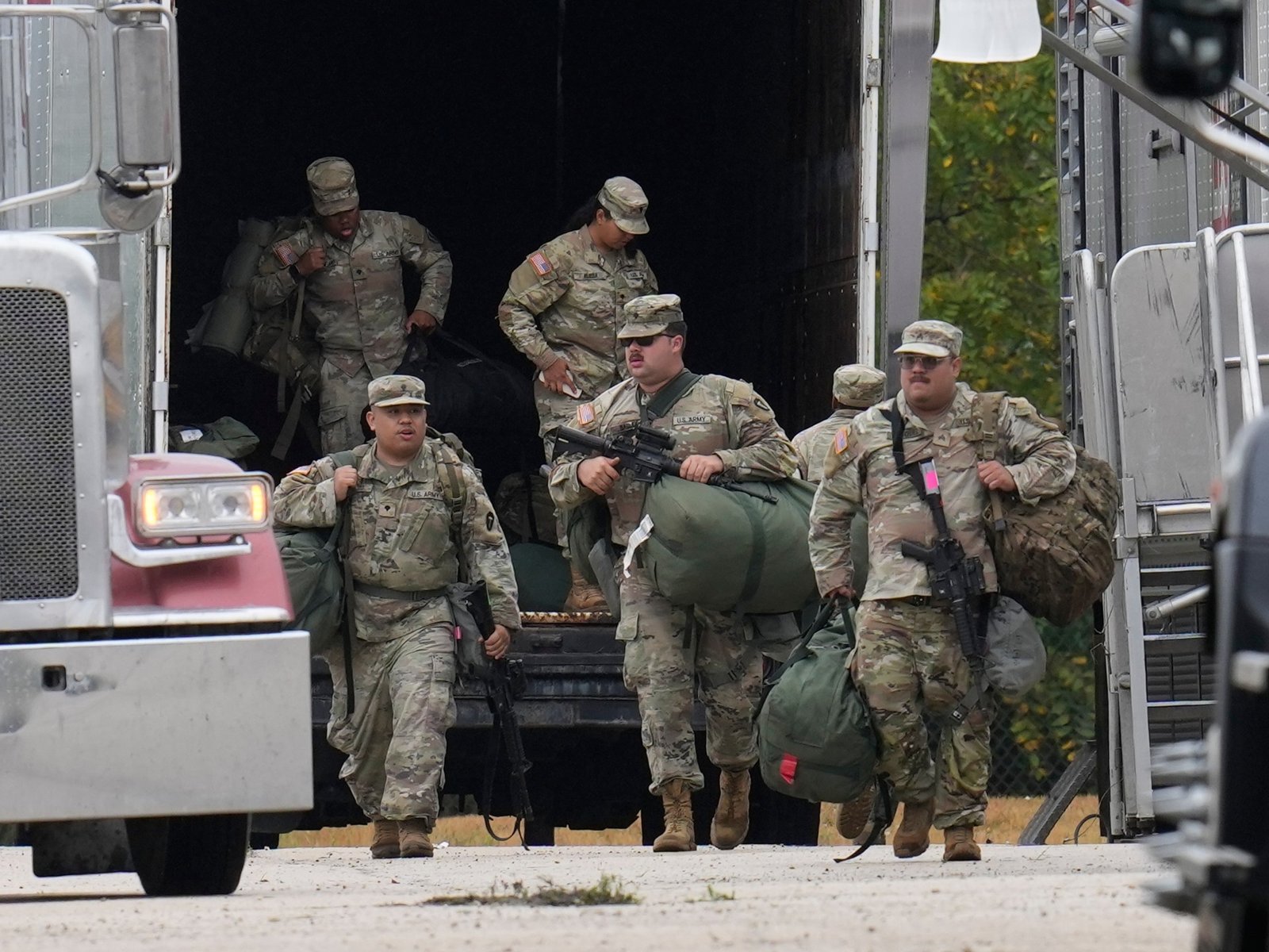 स्थानिक अधिका by ्यांनी स्थानिक अधिका by ्यांनी विरोध दर्शविलेल्या शिकागोमध्ये तैनात करण्यापूर्वी टेक्सासच्या नॅशनल गार्ड सैन्य अमेरिकेत आले आहेत.