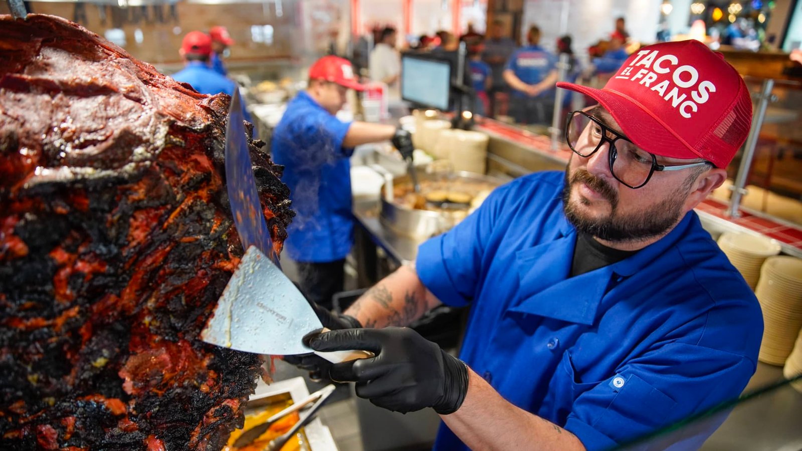 सॅन डिएगो, कॅलिफोर्निया – 8 जून: जोसे सान्चेझ ट्रम्पोने ट्रम्पोमधून अॅडोबाडा कापला. 11 जून 2025 रोजी कॅलिफोर्नियाच्या सॅन डिएगो येथे नॅशनल सिटीमध्ये वेस्टफिल्ड प्लाझा बोनिटा टॅकोस एल फ्रँकचे उद्घाटन. (फोटो अलेजान्ड्रो तमायो/सॅन डिएगो युनियन-ट्रिब्यून गेटी प्रतिमा)