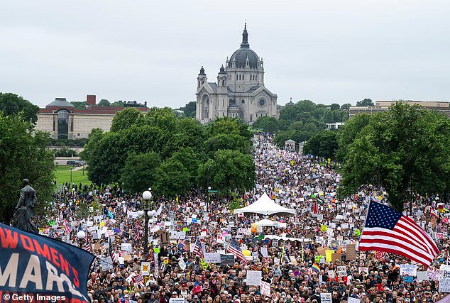 संपूर्ण यूएसमध्ये नियोजित 2,500 हून अधिक निषेधांमध्ये लाखो उपस्थित सहभागी होण्याची अपेक्षा आहे (चित्र: जूनमध्ये नॉर्थ कॅरोलिनामध्ये निदर्शक)