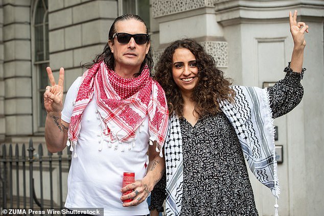 पॅलेस्टाईन ऍक्शनचे सह-संस्थापक रिचर्ड बर्नार्ड आणि होडा अम्मौरी, 2023 मध्ये चित्रित – सुश्री अम्मौरी यांनी दहशतवादी संघटना म्हणून गटाच्या बंदीला आव्हान देण्यासाठी न्यायालयीन लढाईत अंतिम टप्पा जिंकला.