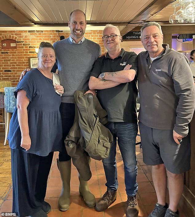 प्रिन्स विल्यम कॉर्नवॉल व्यवसायाच्या अधिकृत डचीवर विल्टशायरमधील मेरे शहराला भेट देत होते, तेव्हा तो आणि अनेक सहयोगींनी वॉलनट ट्री इनमध्ये बोलावले होते (कर्मचारी सदस्य लिसा जेम्स आणि नियमित निक लोव आणि गॅरी फर्मोर यांच्यासोबतचे चित्र)