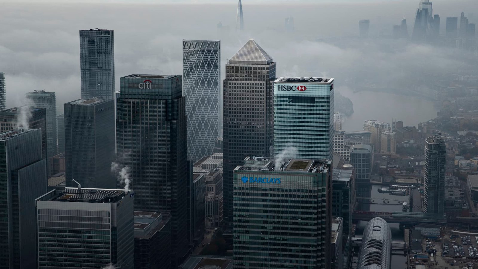 लंडन – 5 नोव्हेंबर, 2020: धुक्याने कॅनरी व्हार्फ बिझनेस डिस्ट्रिक्ट व्यापले आहे, ज्यामध्ये जागतिक वित्तीय संस्था सिटीग्रुप इंक., स्टेट स्ट्रीट कॉर्पोरेशन, बार्कलेज पीएलसी, एचएसबीसी होल्डिंग्स पीएलसी आणि व्यावसायिक कार्यालय ब्लॉक नंबर 1 कॅनडा स्क्वेअर यांचा समावेश आहे.