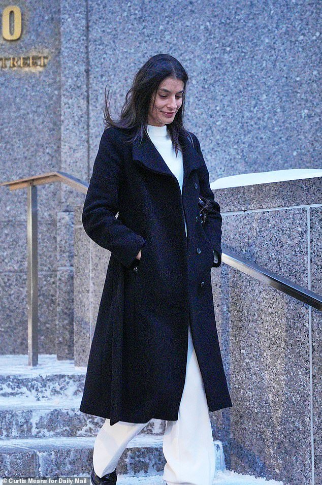 अलून अलेक्झांडरची मॉडेल पत्नी शनी झिग्रॉन बुधवारी कोर्टातून बाहेर पडताना हसताना दिसली