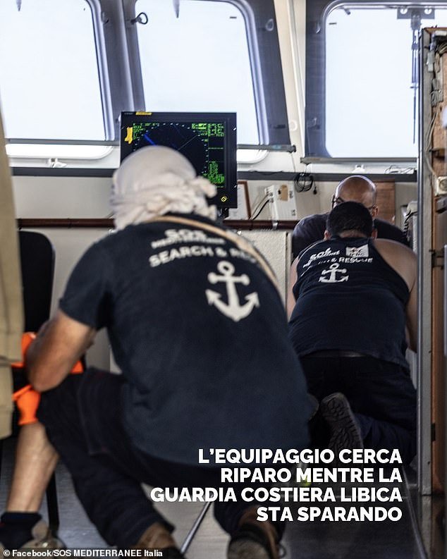 हा क्षण आहे जेव्हा भूमध्यसागरीयातील लिबियन तटरक्षक दलाच्या मशीन गनच्या आगीखाली चॅरिटेबल बचाव जहाज, जेथे त्याच्या क्रूने स्थलांतरित बोटीला मदत करण्यासाठी धाव घेतली.