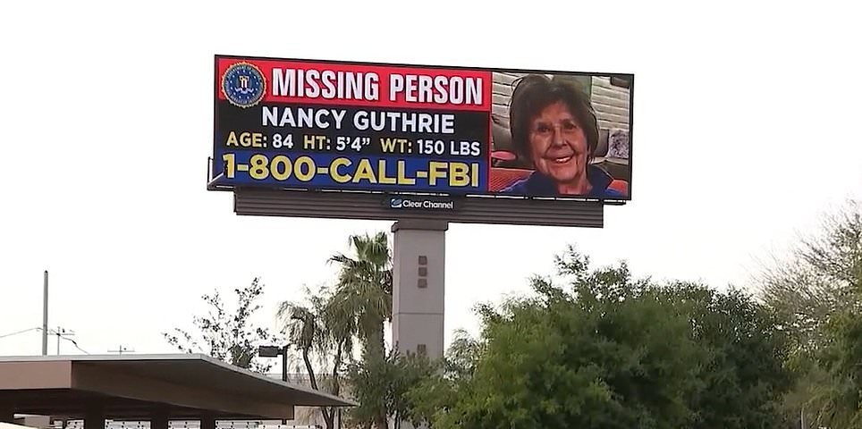 नॅन्सी गुथरी बेपत्ता झाल्याबद्दल माहितीची विनंती करणारे डिजिटल बिलबोर्ड संपूर्ण युनायटेड स्टेट्समध्ये पॉप अप झाले आहेत कारण अधिकारी तिचा शोध घेत आहेत.