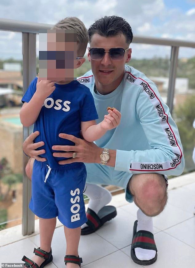 ब्लू स्टीव्हन्स त्याच्या मुलासह. 9 जुलै रोजी मध्य लंडनमधील हार्वे निकोल्स डिपार्टमेंट स्टोअरपासून थेट रस्त्याच्या पलीकडे असलेल्या पार्क टॉवर हॉटेल आणि कॅसिनोच्या बाहेर £1,650-एक-रात्रीच्या पंचतारांकित पार्क टॉवर हॉटेल आणि कॅसिनोच्या बाहेर त्याला भोसकले गेले.