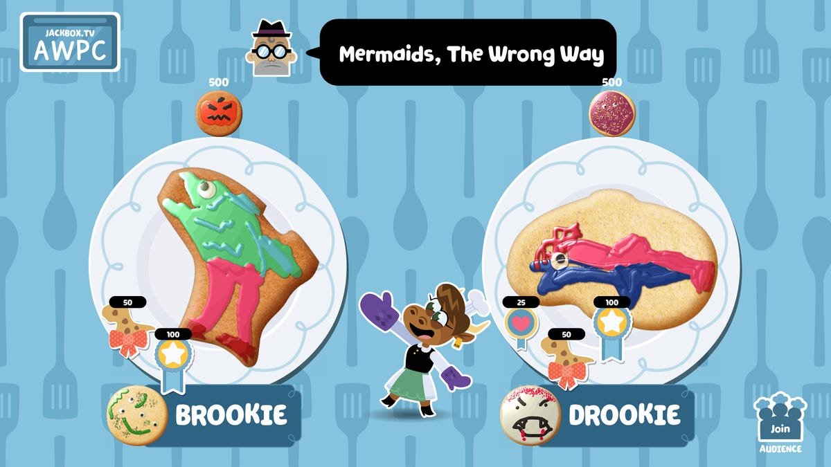 जॅकबॉक्स गेम्सच्या माझ्या आवडत्या पद्धतींपैकी एक म्हणजे Tee KO सारखे गेम, जिथे तुम्ही तुमच्या फोनवर काहीतरी काढता आणि रेखाचित्र मजेदार आणि स्वादिष्ट शीर्षकांशी जुळते. कुकी हाऊस वेबसाइट तुम्हाला कुकीज सजवून हे करण्यास सांगते.