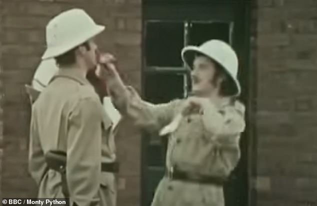 स्वत: ला वाचवण्याच्या हताश प्रयत्नात, पॅलिनने अर्धसैनिकांना सांगितले की तो इंग्रजी कॉमेडियन होता.