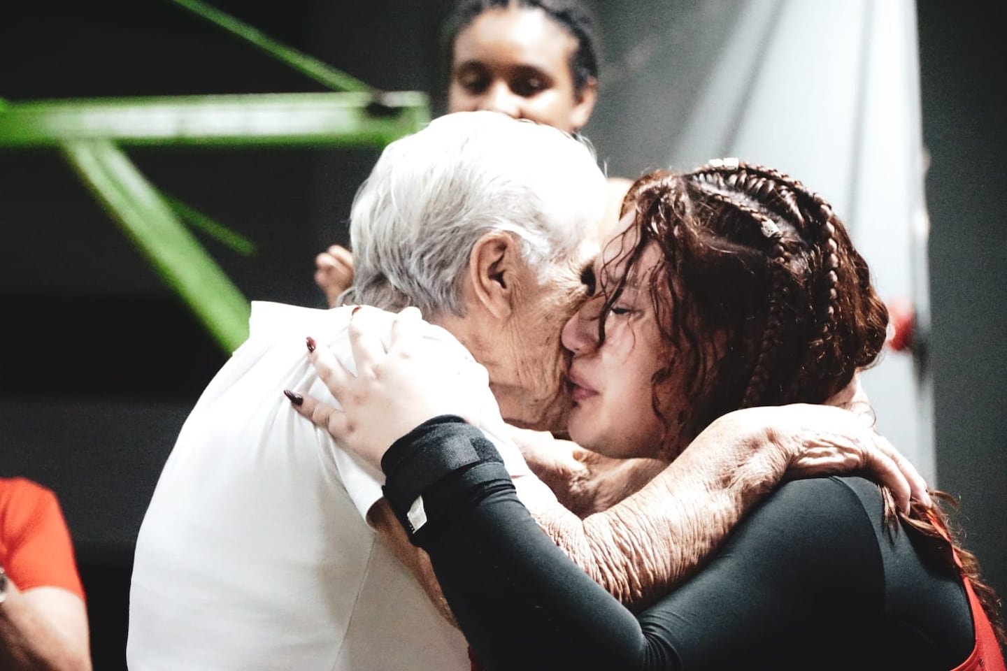 लिमोनमधील लिसेओ डी मॅटिनाच्या व्यायामशाळेत आवाज, वेळ आणि सर्व काही क्षणभर थांबले. वातावरण प्रेम आणि कोमलतेने भरले होते आणि उपस्थित सर्वांनी पुन्हा त्याच दिशेने पाहिले, जिथे एक वयस्कर प्रौढ आणि एक तरुण स्त्री एकमेकांना घट्ट मिठी मारत होते, रडत होते आणि आनंद साजरा करत होते.