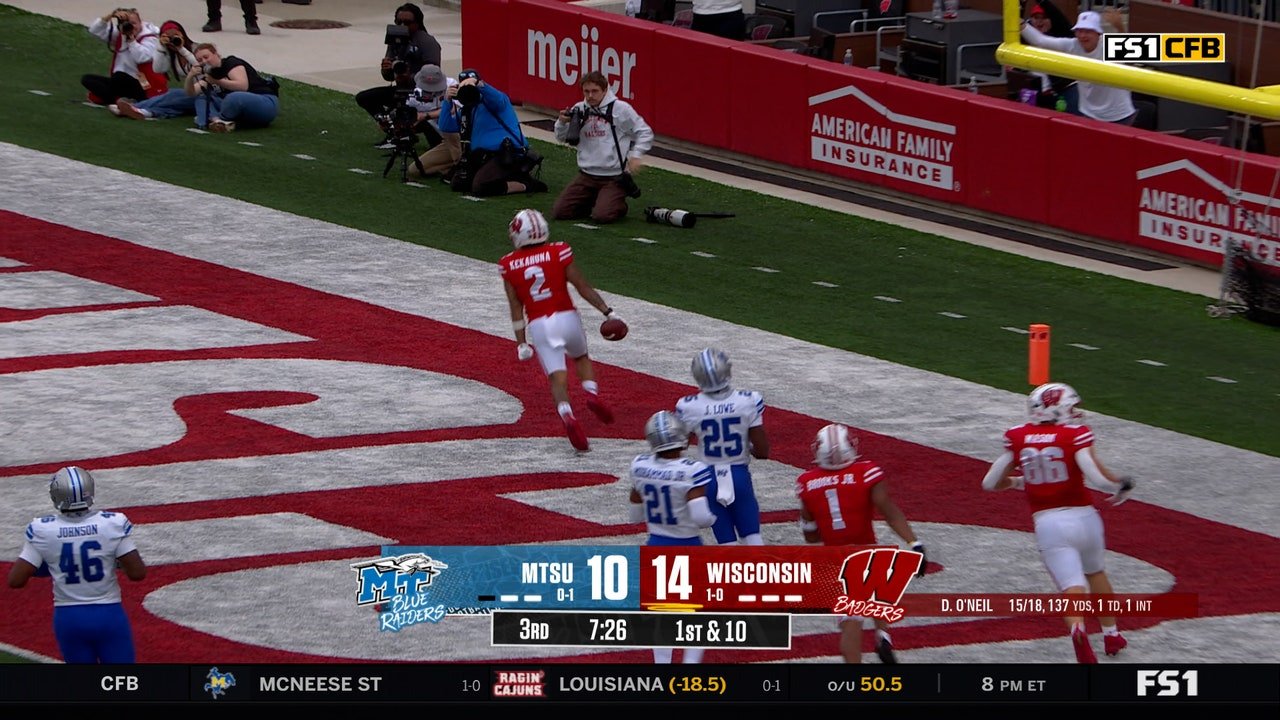 ट्रॅच केकाहुनाने 619 यार्डच्या टचडाउनवर धाव घेतली, ज्याने विस्कॉन्सिन बॅज लीडला टेनेसी ब्लू रायडरकडे 25-0 च्या फरकाने वाढविले.