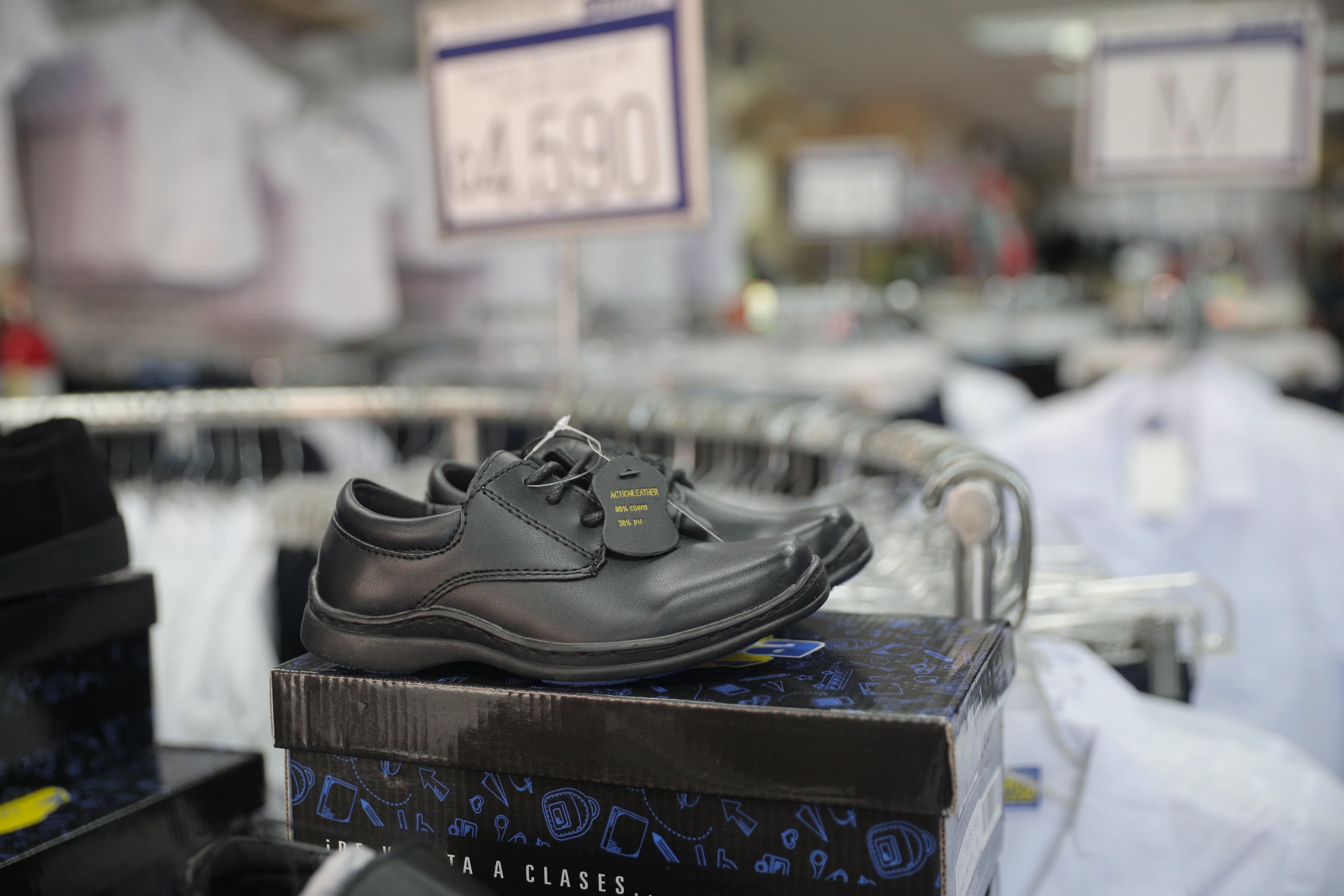 एक आई तिच्या मुलांसाठी बूट खरेदी करण्यासाठी धडपडत आहे. (जेफ्री झामोरा)