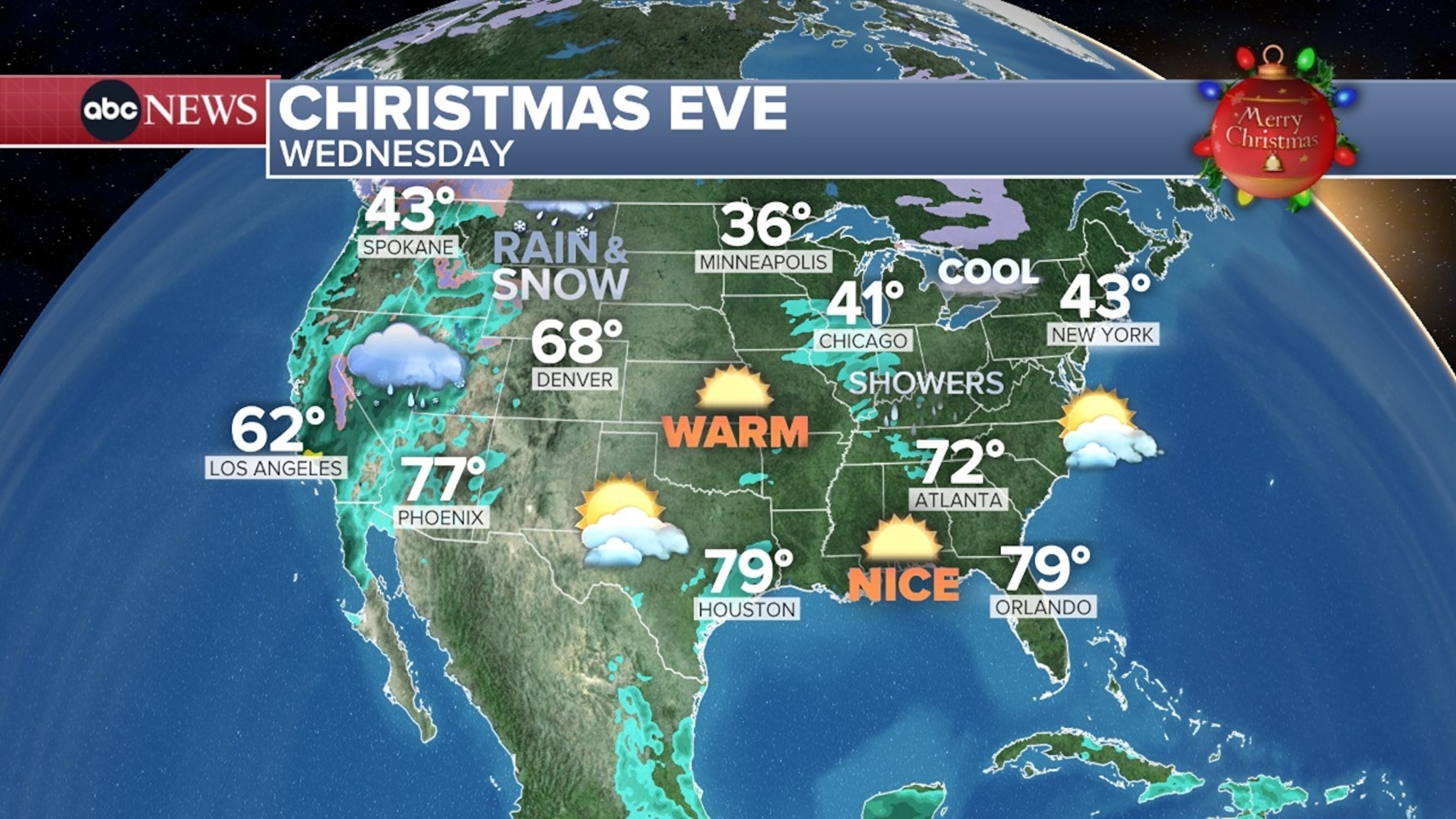 ख्रिसमसच्या पूर्वसंध्येला, देशातील बहुतांश भागात हवामान शांत असेल — परंतु पश्चिम किनारपट्टीवर नाही.