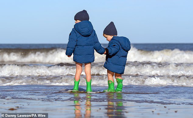 गेल्या वर्षी ऑक्टोबरमध्ये अर्ध्या कालावधीत स्कारबोरोमध्ये थंडीच्या दिवशी दोन मुले समुद्रात खेळत होती