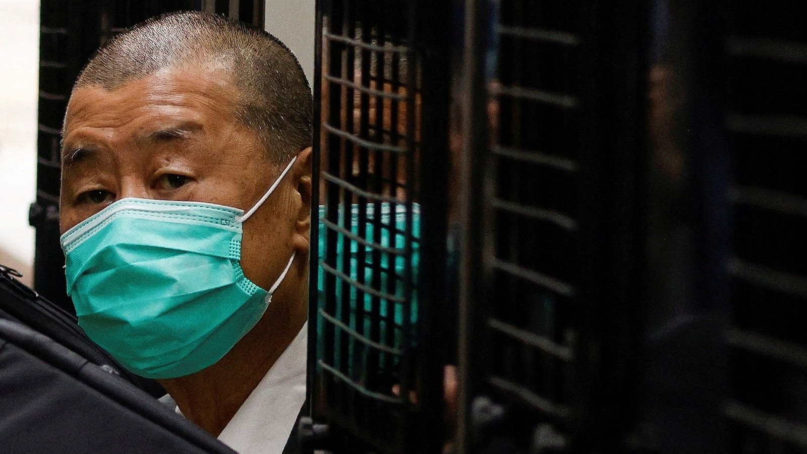 या फाइल फोटोमध्ये, ऍपल डेलीचे संस्थापक, मीडिया मोगल जिमी लाइ, 9 फेब्रुवारी, 2021 रोजी चीनमधील हाँगकाँगमधील जेल व्हॅनद्वारे अंतिम अपील कोर्टात पोहोचले.