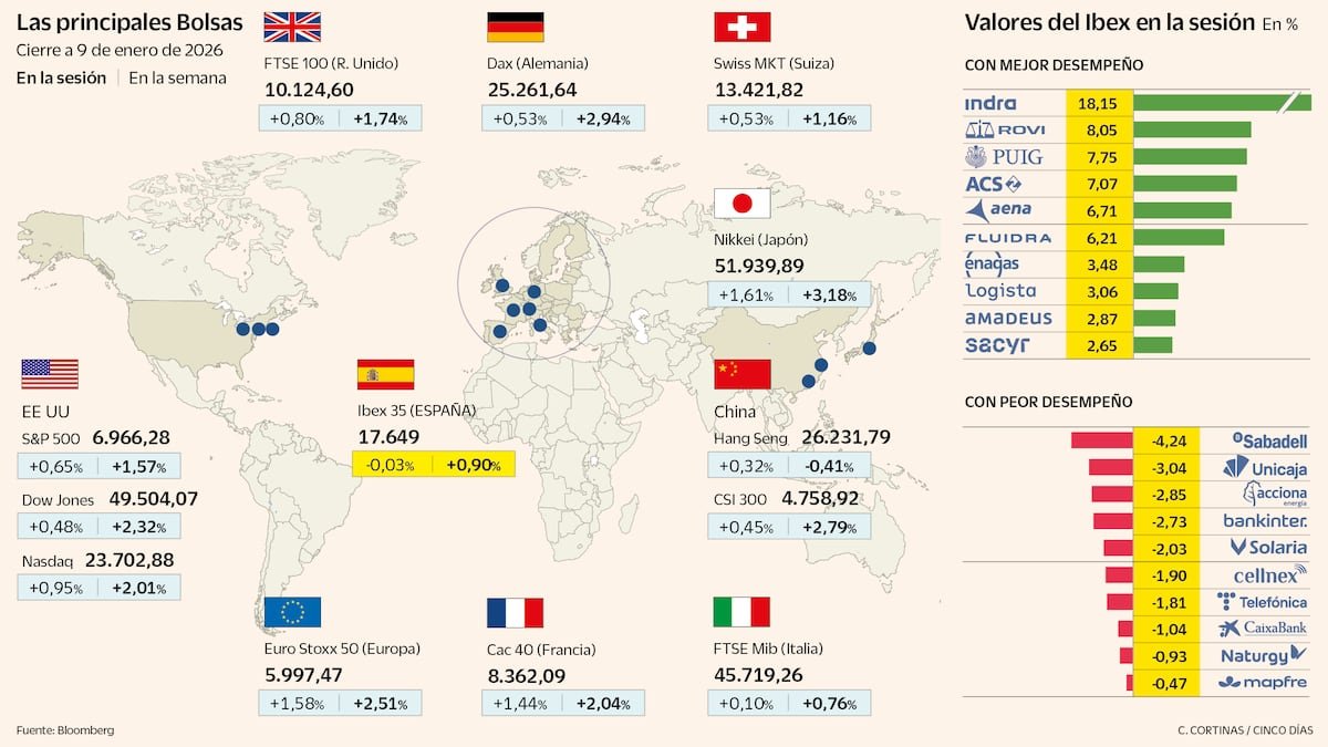 महिन्याच्या शेवटी दर कपातीची अपेक्षा कमी होत असल्याने, गुंतवणूकदार सावधगिरी बाळगून चुकत आहेत. Ibex 35 निर्देशांक, ज्याने अलिकडच्या आठवड्यात भू-राजकीय गोंगाटापासून स्वतःचे संरक्षण केले आहे आणि नफा नोंदवणे सुरू ठेवले आहे, तो थांबला आहे. तथापि, ही एक मध्यम सुधारणा आहे. ड्रॉमध्ये सत्र बंद केल्यानंतर (-0.03%), निर्देशांक 2026 च्या पहिल्या पूर्ण आठवड्यात 0.9% वाढला. स्पॅनिश निर्देशांक सलग सात आठवड्यांपर्यंत वाढत आहे, 2025 च्या मध्यापासून जेव्हा गुंतवणूकदारांनी टेरिफ ट्रूसद्वारे प्रोत्साहित केलेल्या स्टॉक्सवर परत आले तेव्हाचा हा सर्वोत्तम सिलसिला आहे.